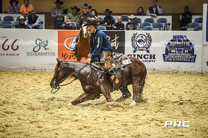 2021 NCHA Futurity Open Finalist riding Baby Im Hot & Rosalitta