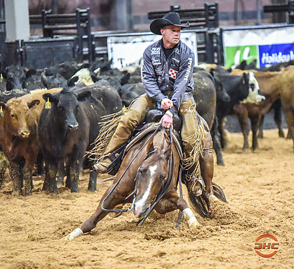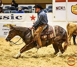 2017 NCHA Futurity Open Semi Finalist riding Take It Eazee and Metallic Drifter